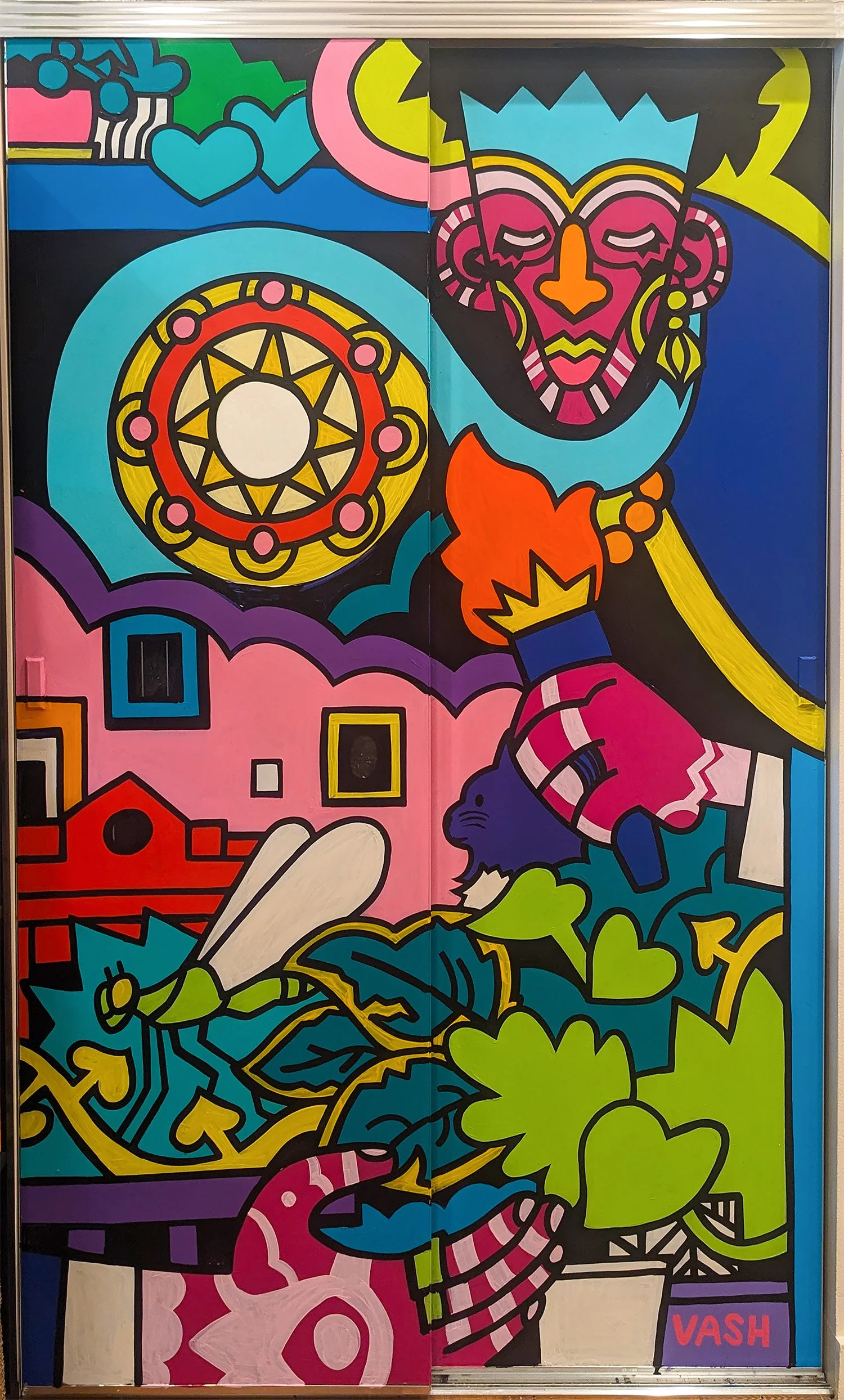 Personal mural created on mirror doors for my first solo exhibition. 'The Torch' is a reflection of things to be protected, and promises that will be fulfilled with the help of those who have contributed to keeping the flame of inspiration burning bright through countless years.